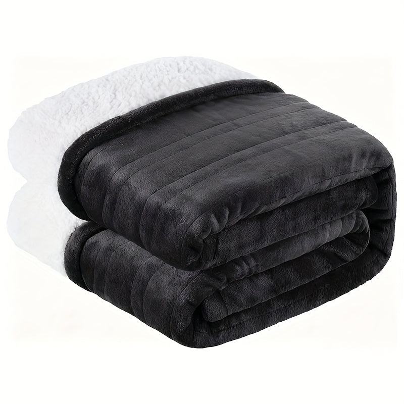 Die Sherpa-Heizdecke besteht aus Flanell und Sherpa-Kunstlammwollstoff.